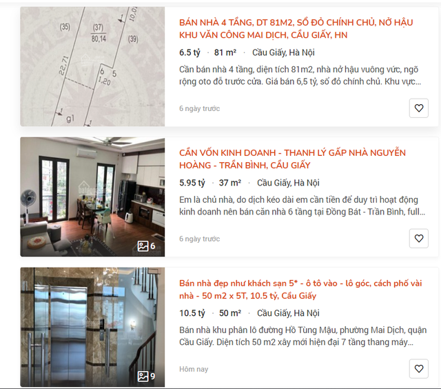 Bên cạnh đó, theo khảo sát trên các trang rao bán bất động sản trực tuyến, khu vực phường Mai Dịch, giá nhà đất hiện đang được rao bán cũng không cao như các giá trúng tại phiên đấu giá vừa qua.