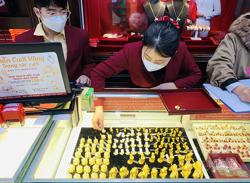 Ngày đầu năm 2022, vàng ở mức 61 triệu đồng/lượng, đến nay đã vượt 63,5 triệu. Tăng tới hơn 2 triệu đồng/lượng. Đây là mức tăng kỷ lục của giá vàng trong thời gian gần đây.