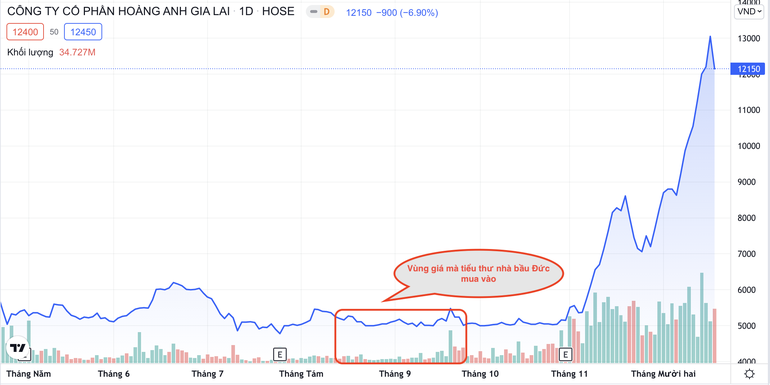 Đóng cửa phiên giao dịch ngày 17/12, cổ phiếu HAG ở mức giá 12.150 đồng/cổ phiếu. Ước tính với mức giá này, ái nữ nhà bầu Đức đạt được khoản lợi nhuận khoảng 140%. Theo đó, giá trị cổ phiếu HAG do Đoàn Hoàng Anh nắm giữ đạt gần 100 tỷ đồng, ước lãi khoảng 60 tỷ đồng.