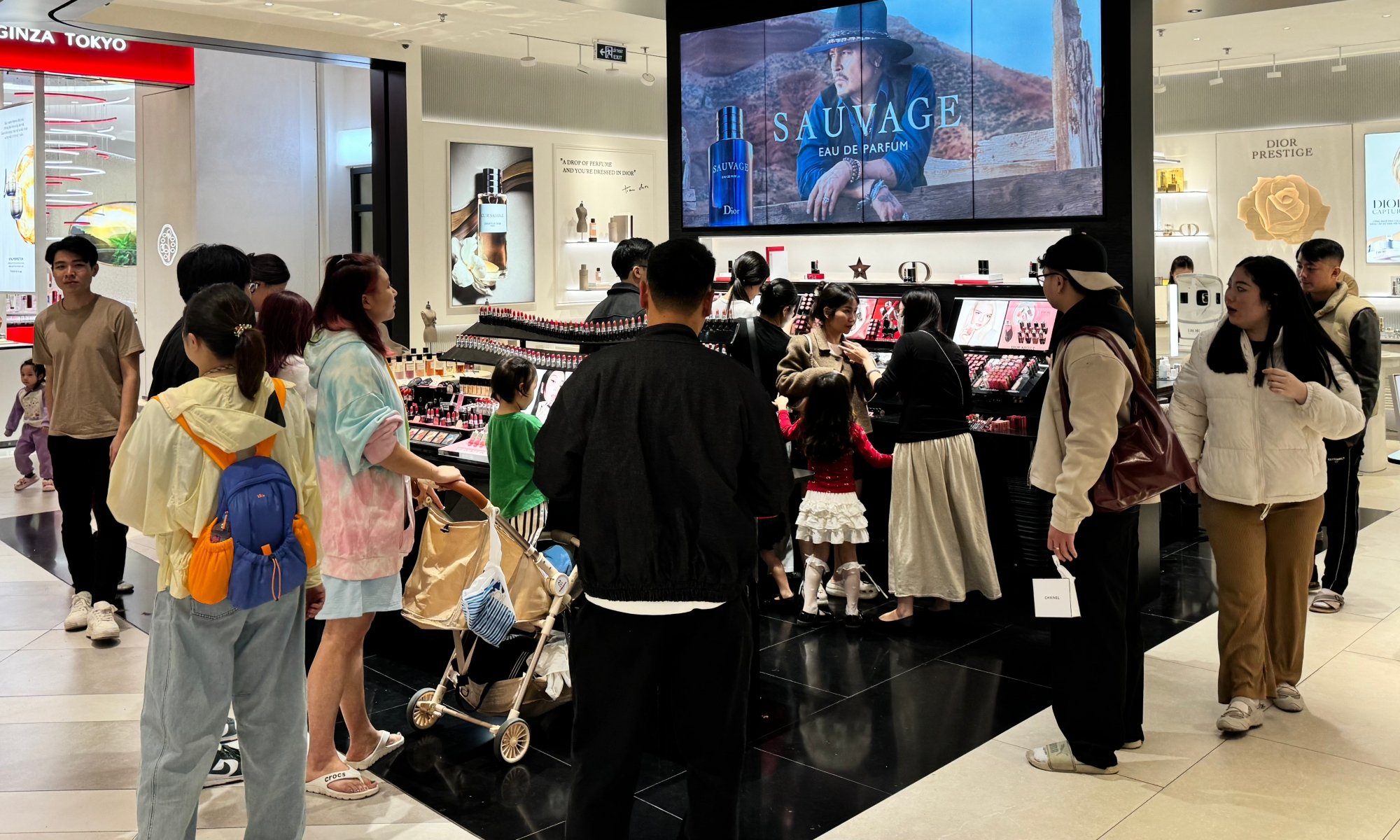 Tại cửa hàng Uniqlo, khu thử đồ liên tục có khách ra vào. Dù đã sát giờ đóng cửa, khu vực thu ngân vẫn có nhiều người xếp hàng chờ thanh toán. Nhân viên cửa hàng cho biết lượng khách trong tối 13/2 tăng rõ rệt so với những ngày trước.