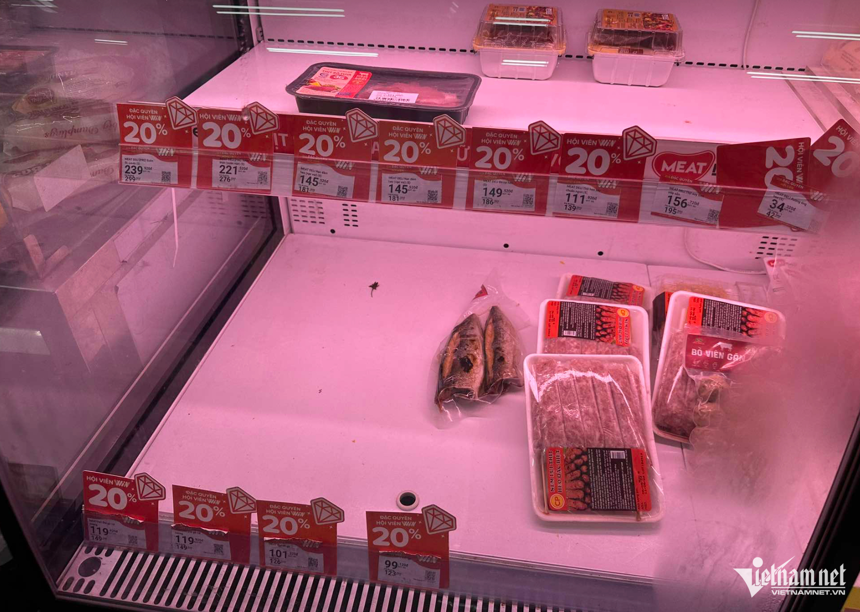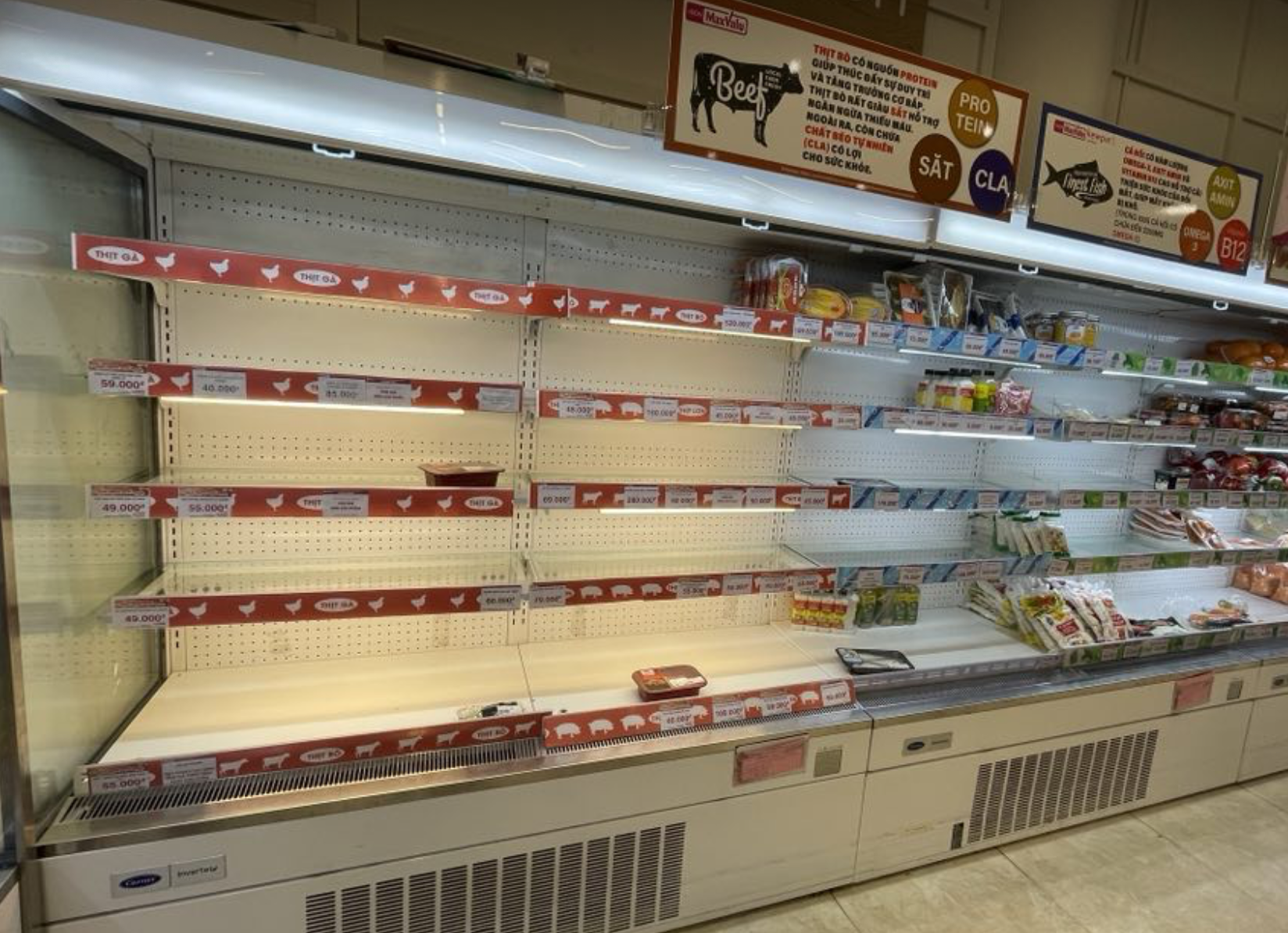 Quầy thịt tại các siêu thị mini ở khu vực này cũng trống không từ ngày hôm qua đến nay.