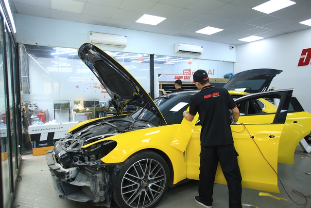Đối với xe cần dán đổi màu, trung tâm sử dụng phòng kính riêng biệt với máy móc chuyên dụng để dán đổi màu cho khách, đảm bảo cho bụi không thể lọt vào gây xước xe.