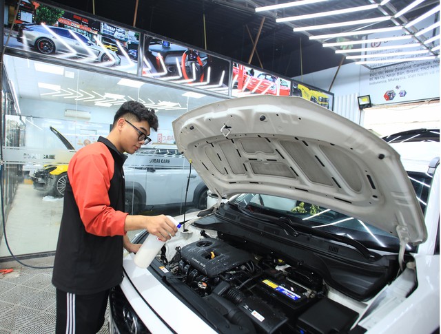 Người quản lý chia sẻ, khi tiếp nhận xe, các nhân viên trung tâm sẽ kiểm tra, ghi nhận các vết xước, chỗ bị hư hỏng rồi lập biên bản bàn giao cho khách hàng. "Sau khi tư vấn và trao đổi, chúng tôi sẽ thực hiện quy trình bảo dưỡng và nâng cấp xe theo yêu cầu cụ thể của khách hàng", anh Đức Duy vui vẻ nói.