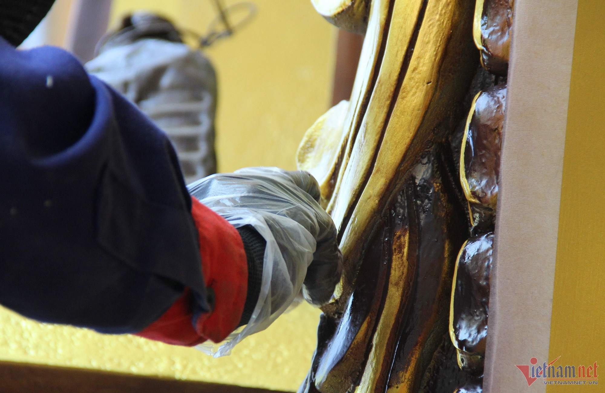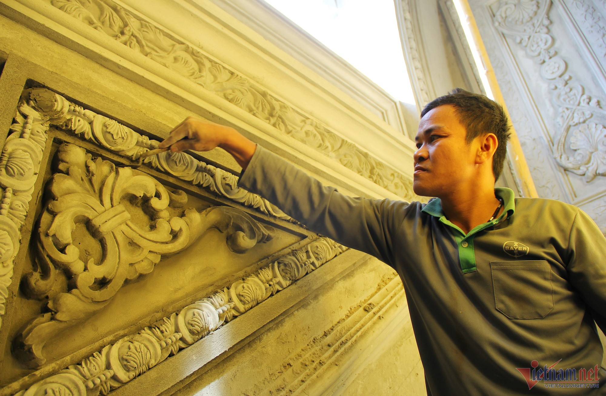 Chị Nguyễn Thị Lâm (công nhân đắp phù điêu) cho biết, việc đắp phù điêu của tòa nhà vô cùng công phu, tỉ mỉ và mất rất nhiều thời gian.