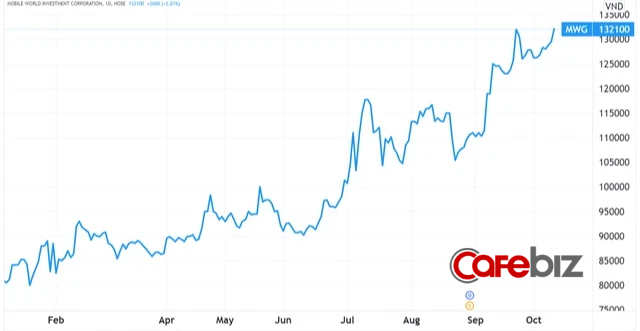 Đây là phiên tăng giá thứ 3 liên tiếp của Thế Giới Di Động. Tính từ đầu tháng 10, cổ phiếu của công ty đã tăng 3,3% còn tính từ đầu năm, MWG đã tăng tới 67%.