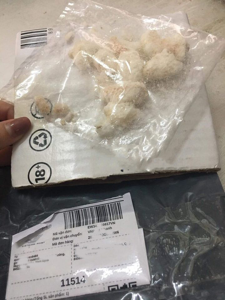 Trong số những món đồ được ship đến có "hòn đá thần kỳ" đặc biệt này. Theo đó sản phẩm được giao đến không ghi rõ bên ngoài hộp là gì. Vì quá nhiều đơn đặt hàng nên chị N.V cũng chỉ kịp mở ra kiểm tra khi đã về tới phòng. Tá hỏa vì nhận được vài cục đá với cục bông chị N.V chỉ biết cười trừ. Thực lòng cũng không hiểu sẽ làm được gì với những thứ này nữa.
