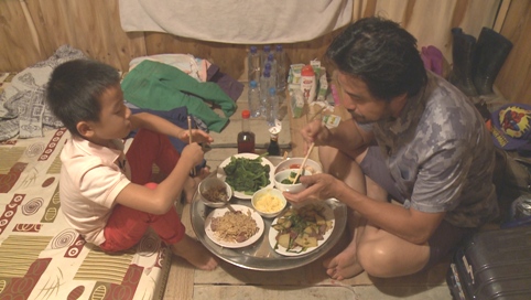 Anh sẵn sàng cùng con trai đối mặt với điều kiện thiếu thốn, khó khăn. Thoát khỏi hình ảnh một doanh nhân lịch lãm, anh đã có lúc trở thành người nông dân chân lấm tay bùn, cầm nơm lội ao bắt cá hay tự đi chợ để nấu cho con trai những bữa cơm hàng ngày.