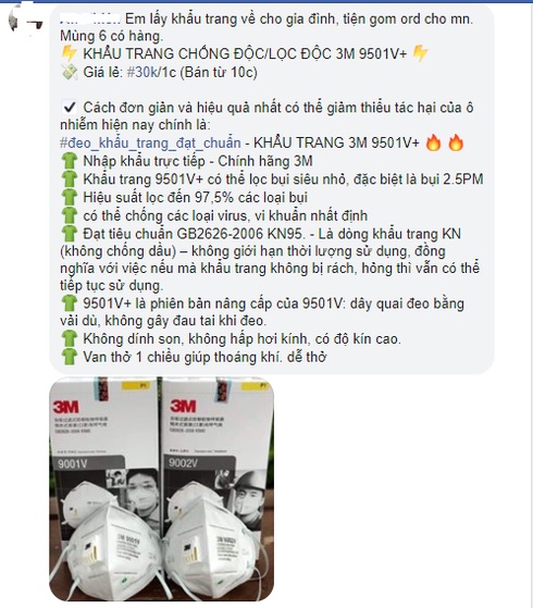 Cụ thể, chủ một shop chuyên bán hàng Đức rao nhận đặt khẩu trang 3M- 9322 của Đức phòng chống virus corona có giá bán lẻ 185.000 đồng/chiếc và đến cuối tuần sẽ có hàng trả tại Hà Nội.