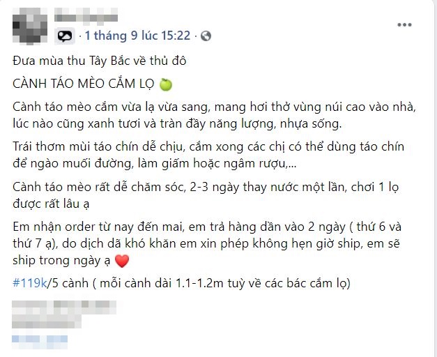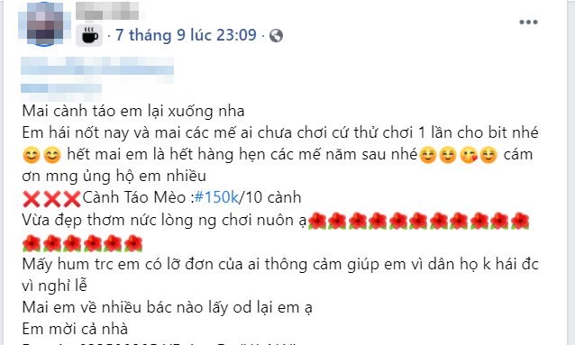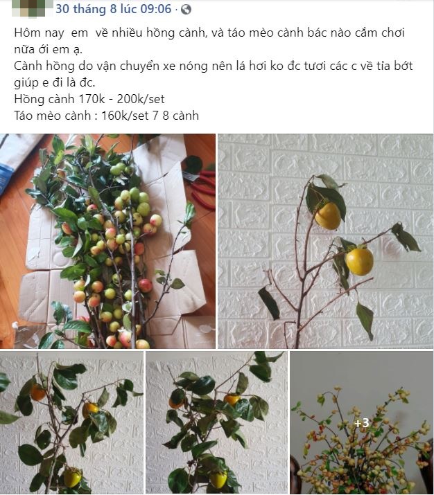 Ngoài cành hồng thì nhiều địa chỉ online cũng bán cả cành táo mèo. Giá thành các cành táo mèo dao động từ 119.000 đồng/5 cành đến 150.000 đồng/10 cành.