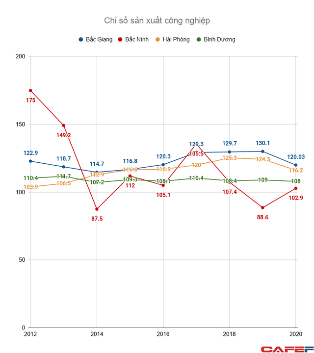 Trong năm 2020, 136 doanh nghiệp của tỉnh giải thể, ngừng hoạt động hoặc thu hẹp sản xuất, bao gồm: Công ty Hosiden, Công ty Si Flex, Công ty Vina Cel, Công ty New Wing… Điều này làm tốc độ tăng trưởng của ngành công nghiệp Bắc Giang chậm lại.