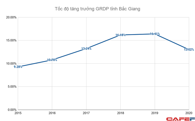 Tốc độ phát triển của Bắc Giang là hết sức ấn tượng trong 5 năm trở lại đây. Năm 2020, tổng sản phẩm trong tỉnh (GRDP) tăng 13,02% với động lực chính đến từ lĩnh vực công nghiệp (góp hơn 57% trong cơ cấu). Đây là con số rất cao, nhất là khi so sánh với tăng trưởng GDP của Việt Nam chỉ đạt 2,91%. Trên toàn cầu, hầu hết nền kinh tế bị ảnh hưởng nặng do tác động của đại dịch COVID-19 chưa từng có tiền lệ. Tăng trưởng GRDP của tỉnh Bắc Giang có chậm lại, hai năm trước đó 2018 – 2019, tốc độ đều trên 16%.