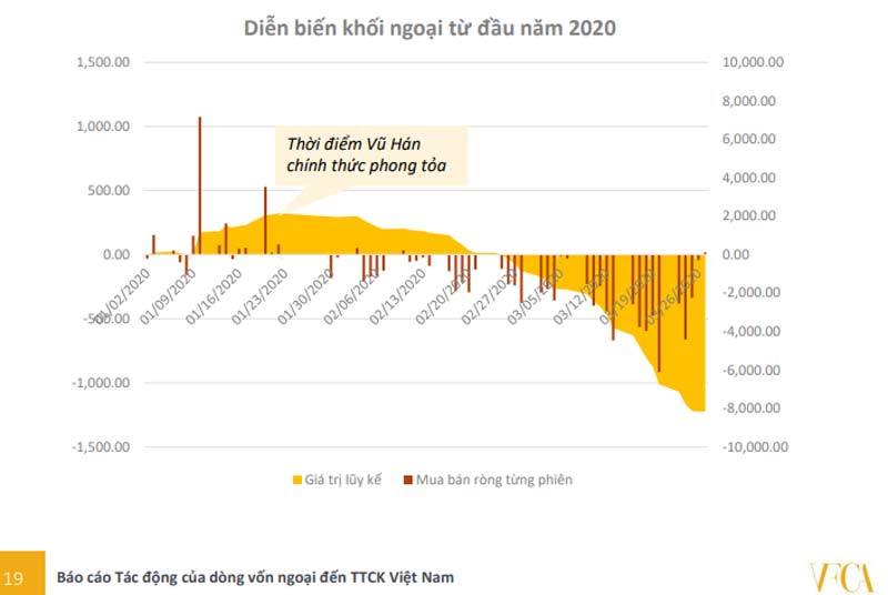 Đầu năm 2020, khối ngoại mua ròng tích cực trên TTCK và chỉ số VN-Index cũng đã tiến sát vùng 1.000 điểm trước khi quay đầu giảm mạnh khi đại dịch Covid-19 bùng phát trên thế giới, gây ra tình trạng bán tháo trên tất cả các TTCK.