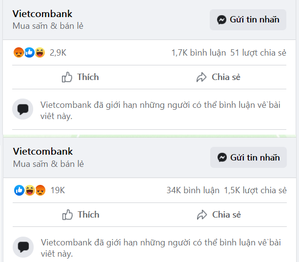 Trước cơn bão mạng, Vietcombank đã phải khóa phần bình luận trong Fanpage cho rất nhiều bài viết.