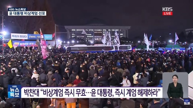 Theo Yonhap, Tổng thống Yoon Suk Yeoltuyên bố thiết quân luật, cáo buộc phe đối lập làm tê liệt chính phủ bằng "các hoạt động chống nhà nước, âm mưu nổi loạn".