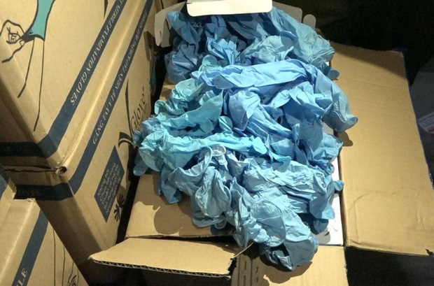 Qua kiểm tra, cơ quan chức năng phát hiện nhiều sản phẩm đã qua sử dụng còn dính vết bẩn, hàng kém chất lượng, có dấu hiệu giả nhãn hiệu một số thương hiệu sản xuất găng tay y tế nổi tiếng ở Việt Nam.