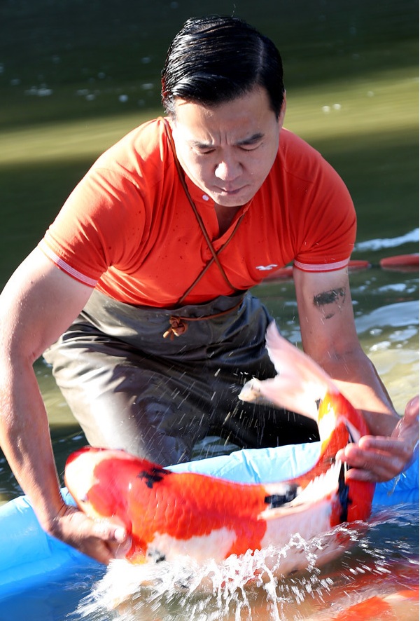 Theo doanh nhân Ngô Thắng, cá Koi do nhập về đều trải qua quá trình kiểm tra nghiêm ngặt tình trạng sức khoẻ. Ảnh: Nhip cau đầu tư