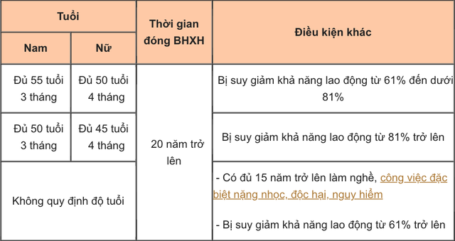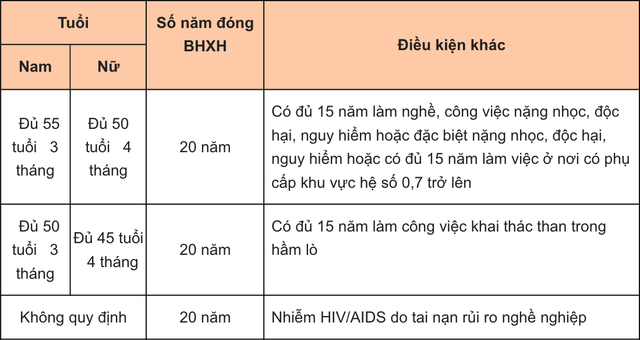 * Điều kiện nghỉ hưu trước tuổi từ năm 2021: