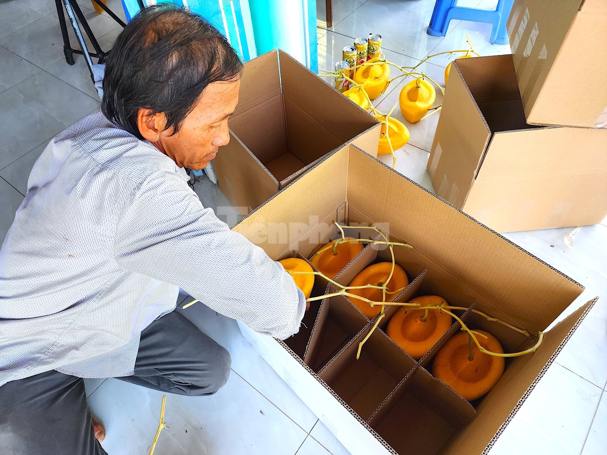 Cho ra thị trường Tết khoảng 600 trái dưa hấu tạo hình thỏi vàng và hình vuông, trong đó có 100 cặp loại 1, còn lại là loại 2. Tuy nhiên, mới 24 Tết (ngày 15/1), số dưa hấu độc lạ của ông Trần Văn Cưng (58 tuổi, ở huyện Lai Vung, tỉnh Đồng Tháp) đã được thương lái mua hết.