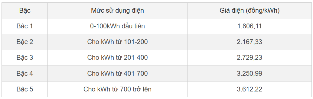 Trên cơ sở thiết kế các bậc nêu trên, Bộ Công Thương cho rằng giá điện cho từng bậc được thiết kế đảm bảo hạn chế tối đa tác động tới các hộ sử dụng điện.