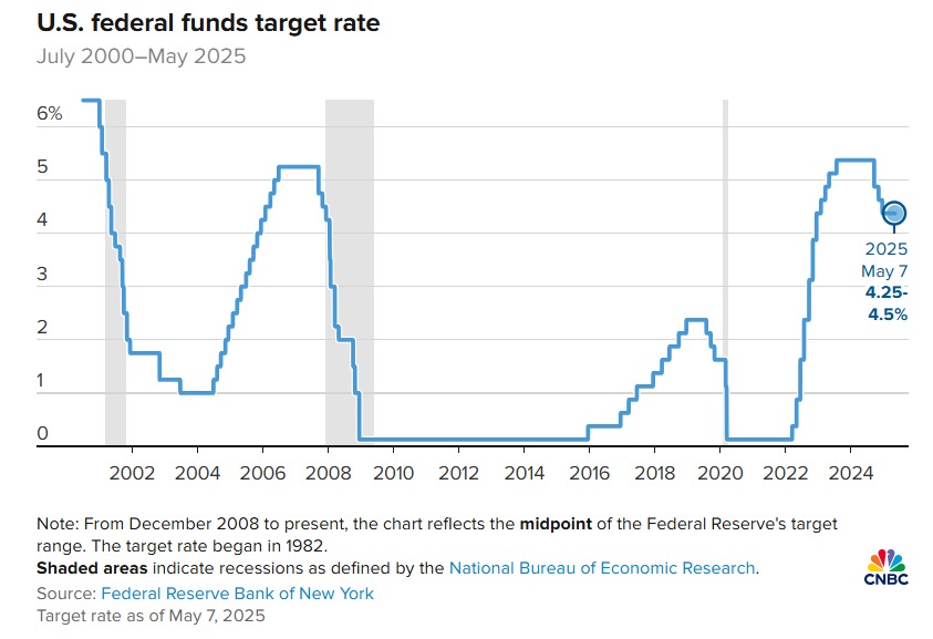 08/05/2025 13:40Fed giữ nguyên lãi suất, cảnh báo rủi ro kinh tế và nguy cơ đình lạm