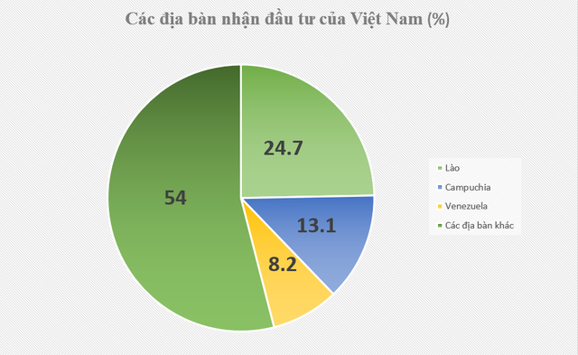 Các địa bàn nhận đầu tư của Việt Nam nhiều nhất lần lượt là Lào (24,7%); Campuchia (13,1%);Venezuela (8,2%).