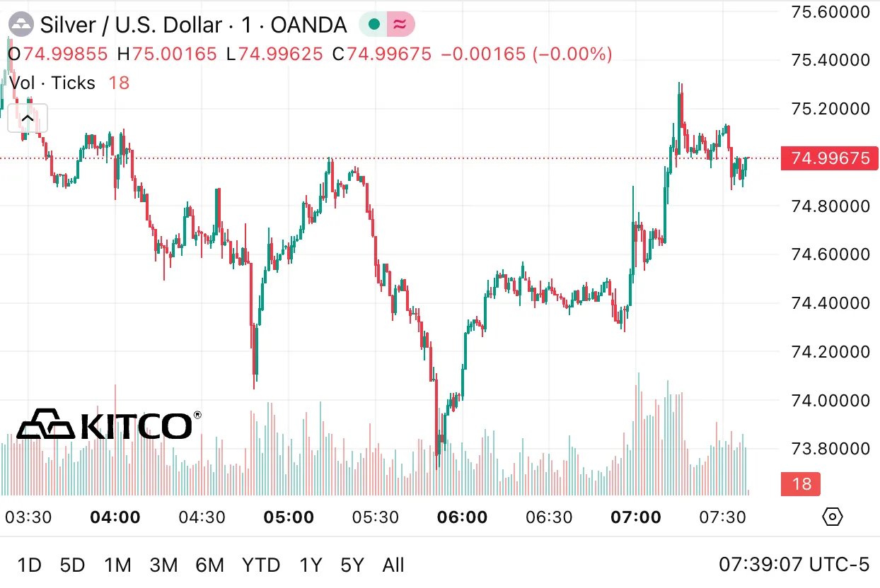 Trên thị trường quốc tế, diễn biến cũng u ám không kém khi giá bạc giao ngay đã tụt sâu về mức 74,83 USD/ounce. Mức giá này đã cách rất xa so với đỉnh cao trên 121 USD/ounce từng được ghi nhận vào cuối tháng 1 vừa qua. Không chỉ riêng bạc, "người anh em" kim loại quý là vàng cũng chung cảnh ngộ khi đánh mất mốc quan trọng 5.000 USD/ounce từ đêm 26/1.