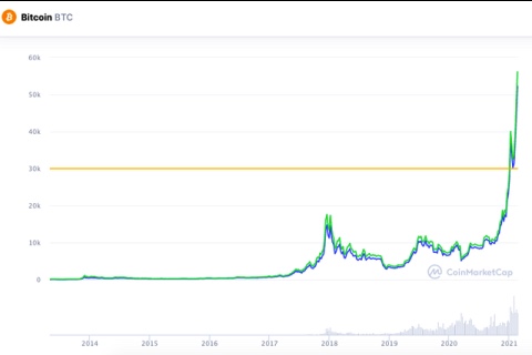 Trên trang CoinMarketCap lúc 10h30 sáng nay (20/2), đồng tiền điện tử này đang giao dịch với mức cao kỷ lục mọi thời đại là 55.655 USD, nâng vốn hóa thị trường bitcoin lần đầu tiên vượt mốc 1.000 tỷ USD. Như vậy, chỉ riêng trong tháng này, giá bitcoin đã tăng hơn 60%.