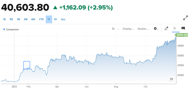 Vào tháng 4 năm ngoái, giá Bitcoin giảm rất sâu xuống dưới 40.000 USD, đến vài tháng gần đây mới bắt đầu hồi phục dần phần lớn nhờ những thông tin khá tích cực từ FED và kỳ vọng rằng một quỹ giao dịch bitcoin giao ngay (ETF) có thể được tạo ra và phê duyệt để ra mắt tại Mỹ.