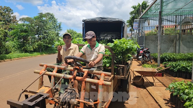 Sáng 16/6, ông Y Sư Niê (xã Hòa Đông, huyện Krông Pắc) cùng người cháu chạy xe công nông hơn 20 km lên cơ sở cây giống của Cty TNHH Nông lâm nghiệp Quốc Cường Ea Kmat (thôn 10, xã Hòa Thắng) mua 500 cây cà phê.
