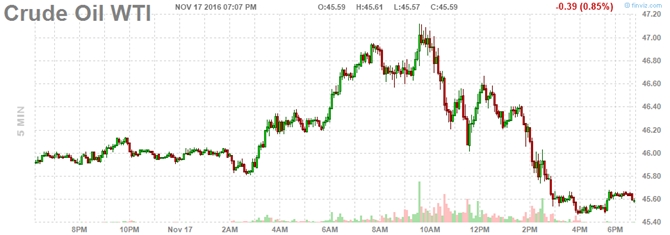 18/11/2016 16:47Giá dầu đồng loạt giảm trước lo ngại nguồn cung