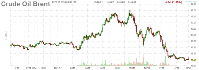 Diễn biến giá dầu thô Brent trong phiên. Nguồn: Finviz |