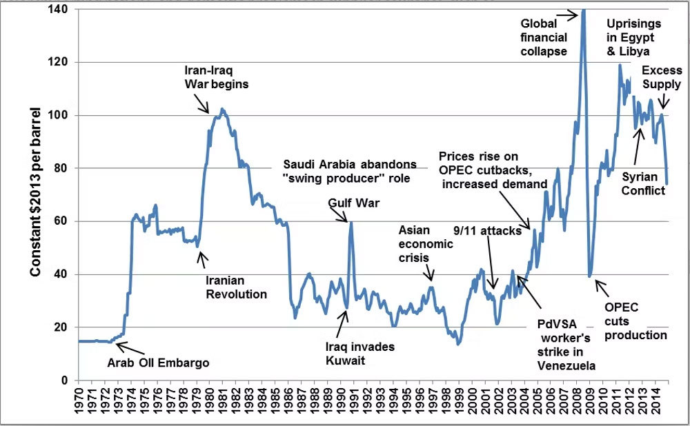 Xung đột giữa Nga và Ukraine đã khiến giá dầu tăng vọt. Trước đó, trong lịch sử, giá dầu cũng trải qua nhiều cuộc khủng hoảng khác do tác động của tình hình địa chính trị thế giới.