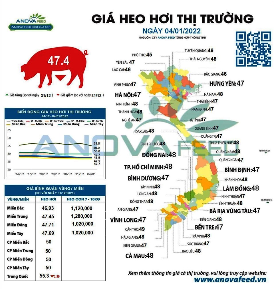 Từ ngày 4.1.2022, giá lợn hơi đã ngừng đà giảm, bình quân cả nước đạt 47,4 nghìn đồng/kg. Dự báo giá lợn khó tăng đột biến trong dịp Tết.