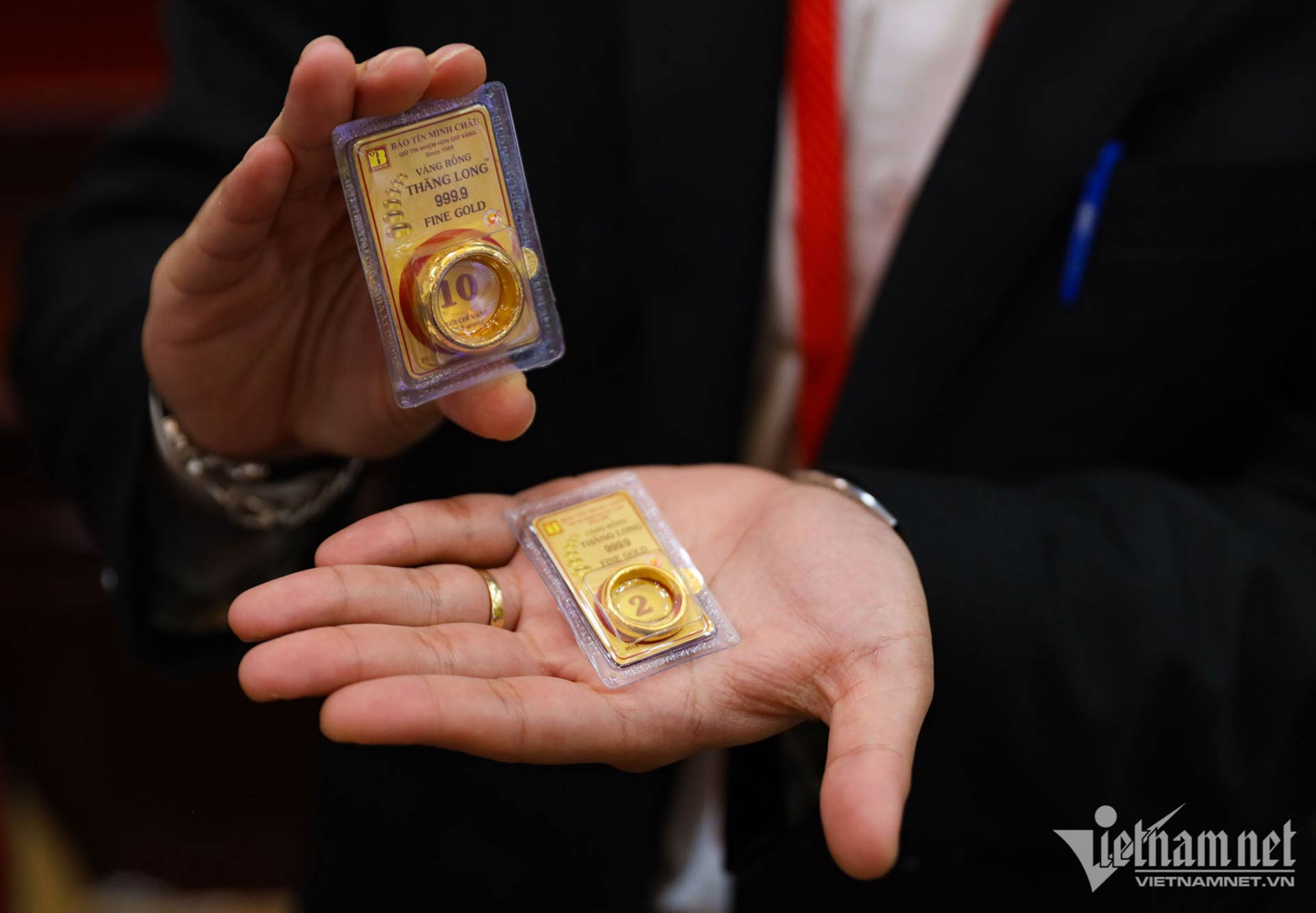 Tại Công ty Bảo Tín Minh Châu, giá vàng nhẫn tròn trơn vàng rồng Thăng Long và giá vàng miếng vàng rồng Thăng Long ngang nhau, cùng được niêm yết ở mức 82,54-83,44 triệu đồng/lượng (mua vào - bán ra). Còn so với giá vàng miếng SJC, giá vàng nhẫn tròn trơn vàng rồng Thăng Long cao hơn 1,04 triệu đồng/lượng ở chiều mua vào, còn giá bán ra chỉ còn thấp hơn 60 nghìn đồng/lượng.