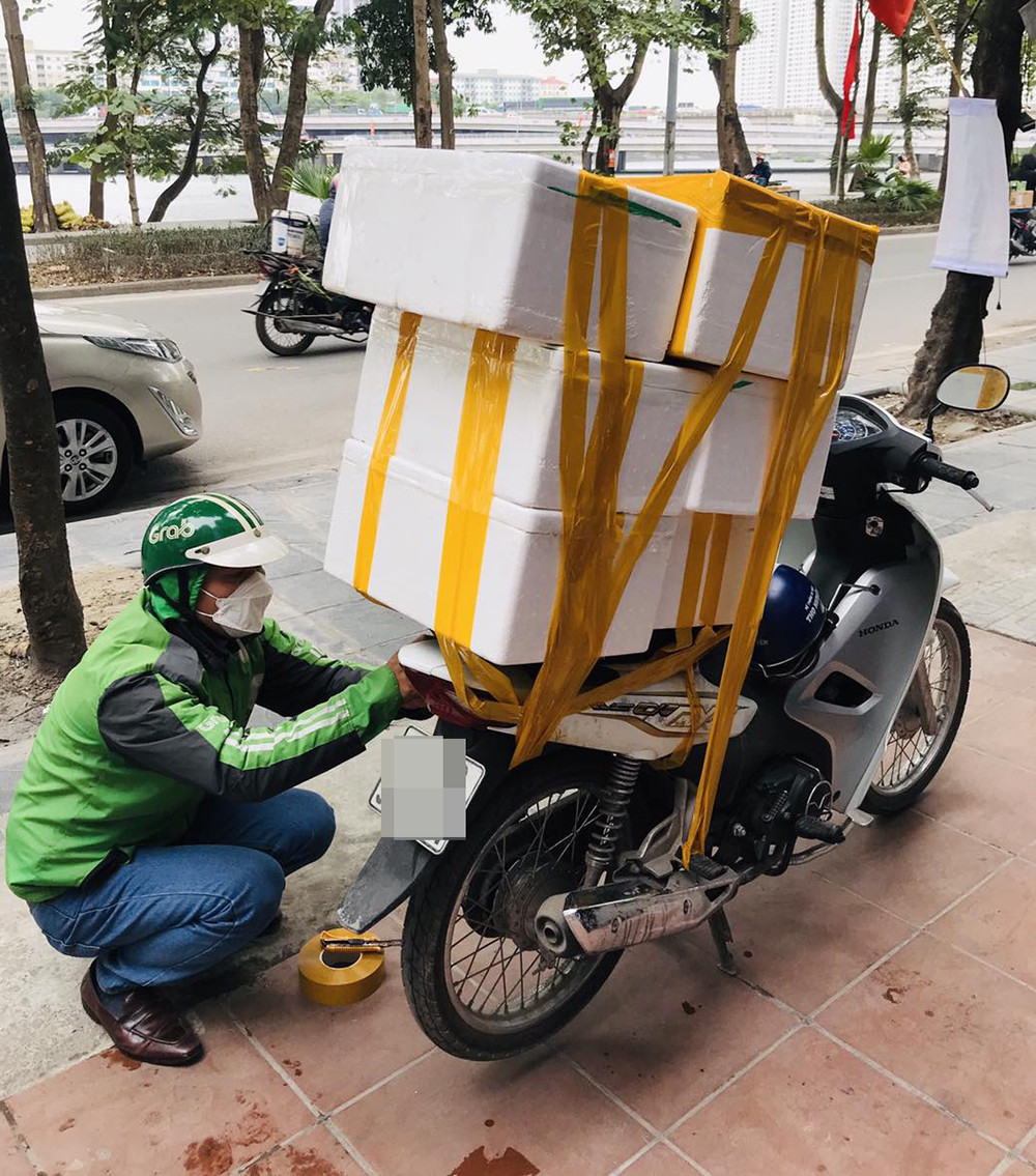 Lượng khách đặt cua hoàng đế tăng vọt vào những ngày giáp Tết nên 3 shipper của cửa hàng anh Tú giao không xuể. Những đơn không cần thu tiền hoặc ứng tiền ít, anh phải đặt shipper qua các app để giao cua kịp cho khách.