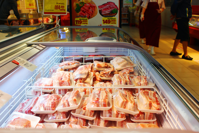 Giá thịt heo nhập bình quân thấp giúp giá bán lẻ loại này tại các siêu thị, kênh online rẻ hơn giá thịt heo tươi trong nước 35-40%, thậm chí có sản phẩm thấp hơn trên 50%. Chẳng hạn, thịt thăn nhập từ Canada tại hệ thống BigC có giá 146.000 đồng một kg; thịt đùi và nạc dăm Brazil là 169.000 đồng; sườn thăn 119.000 đồng, ba chỉ heo 149.000 đồng mỗi kg. Còn trên các kênh bán hàng online, giá thịt nhập khẩu dao động 85.000-120.000 đồng một kg tuỳ loại.