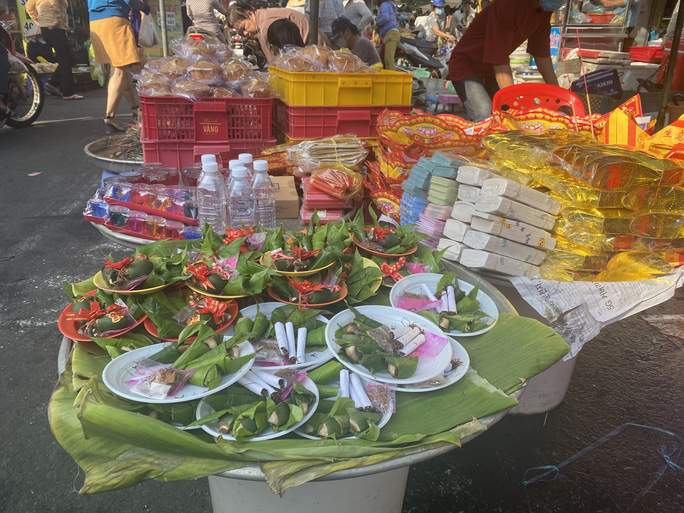 Trong khi đó, bộ tam sên (tôm, thịt heo, trứng vịt) được làm sẵn có giá 40.000 đồng/bộ, bộ trầu cao từ 10.000-15.000 đồng. Đồ cúng vàng mã 10.000 đồng/bộ, vàng miếng 15.000 đồng/bộ. Bông cúc lưới 60.000 đồng/bó 10 bông, cúc thường 40.000 đồng/bó, bông vạn thọ 20.000 đồng/bó.