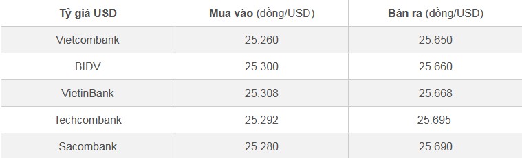Sacombank cũng đưa giá USD lên mức 25.280-25.690 đồng/USD (mua - bán), đắt hơn 80 đồng ở chiều mua và tăng 110 đồng ở chiều bán.