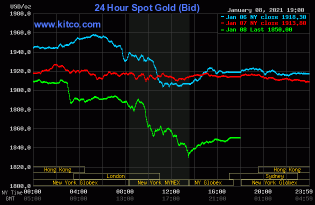 Sau khi đóng cửa, giá vàng hồi phục lại đôi chút với vàng giao ngay nhích lên 1.850 USD/ounce, vẫn thấp hơn 68 USD so với phiên trước đó.