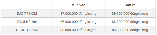 Vào trưa 9/5, giá vàng SJC giao dịch 86,50 – 88,80 triệu đồng/lượng, tăng 300.000 đồng/lượng so với phiên sáng cùng ngày. Trong khi đó vào phiên sáng 9/5, giá vàng bán ra là 88,50 triệu đồng/lượng, tăng 1 triệu đồng/lượng so với cuối ngày 8/5.