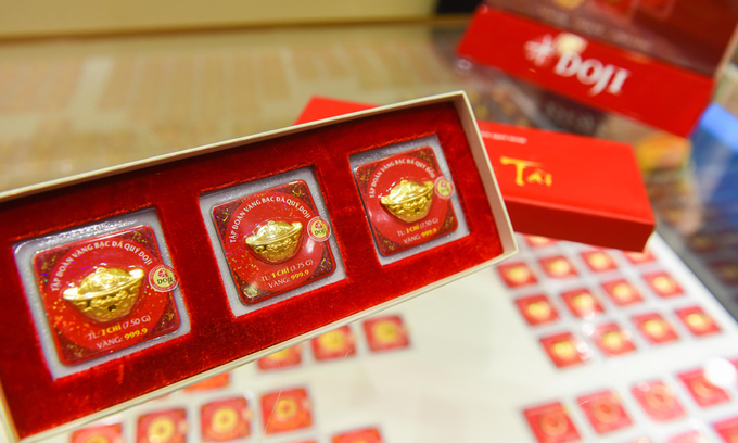 Cùng lúc, giá mua bán tại Công ty Vàng bạc đá quý Sài Gòn (SJC) vẫn quanh 56,7 - 57,9 triệu đồng, không thay đổi nhiều so với hôm qua.
