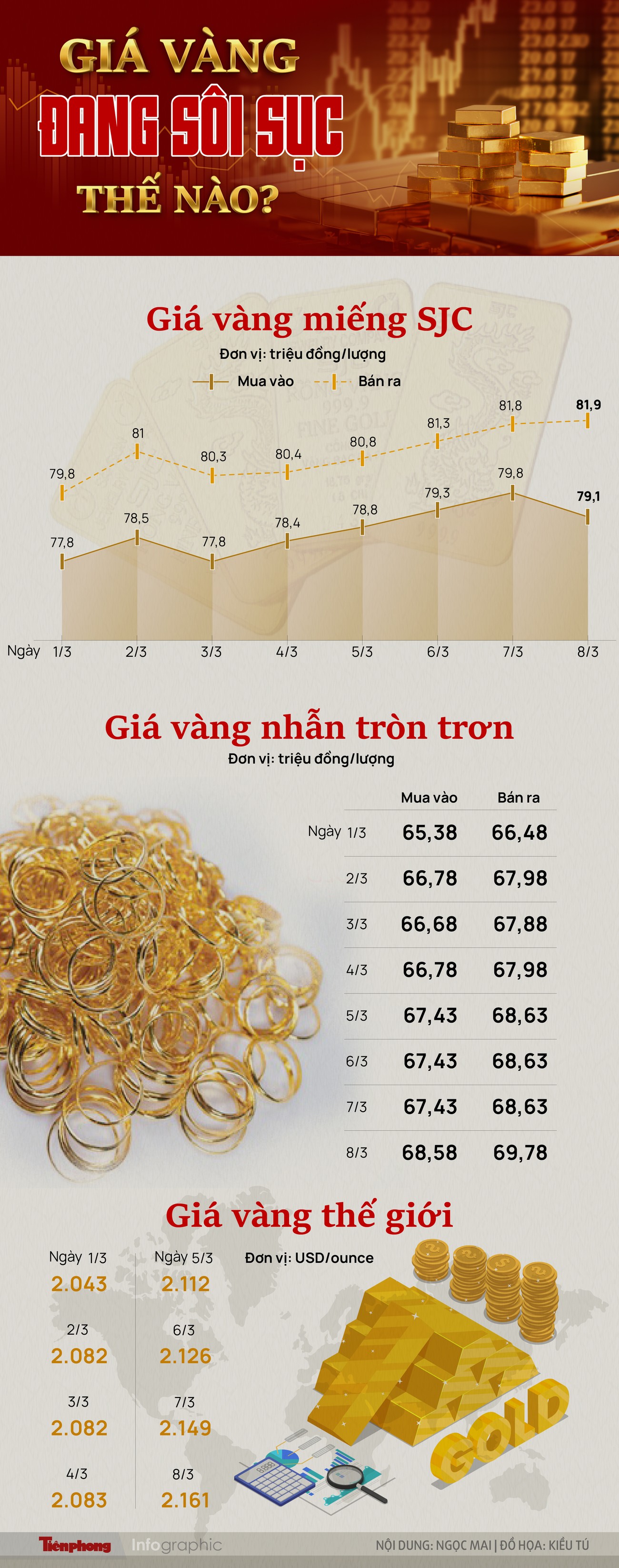 09/03/2024 15:08Giá vàng đang sôi sục thế nào?