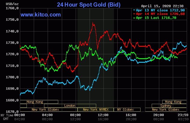 Tại thời điểm 8h30 sáng 16/4 (giờ Việt Nam), giá vàng thế giới giao ngay ở mức 1.716 USD/ounce. Giá vàng hôm nay cao hơn 34,3% (440 USD/ounce) so với đầu năm 2019.