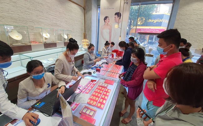 Cùng với đà đi lên của giá vàng SJC, vàng trang sức và vàng nhẫn 24K các loại cũng bật tăng mạnh sau nhiều ngày ổn định. Giá vàng trang sức các loại hiện được giao dịch quanh 53,65 triệu đồng/lượng mua vào, 54,25 triệu đồng/lượng bán ra, tăng khoảng 300.000 đồng/lượng so với cuối tuần và đang thấp hơn vàng SJC khoảng 2 triệu đồng mỗi lượng.
