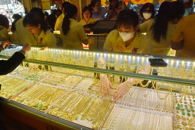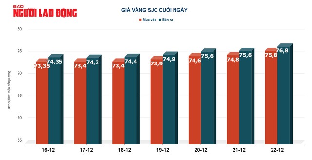 Tại Việt Nam, thị trường vàng biến động bất thường. Giá vàng SJC trong ngày 22-12 có lúc tăng 1,2 triệu đồng để lập kỷ lục mới 77,4 triệu đồng/lượng dù sức mua rất yếu. Đến cuối ngày, vàng miếng SJC bất ngờ đảo chiều giảm 600.000 đồng, xuống còn 76,8 triệu đồng/lượng.