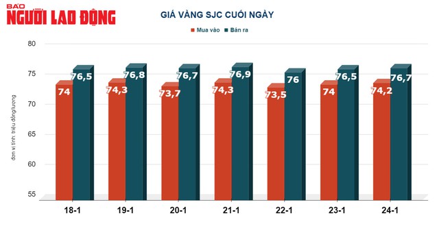 Tại Việt Nam, do sức mua – bán yếu nên giá vàng SJC trong ngày 24-1 gần như bất động tại 76,5 triệu đồng/lượng.
