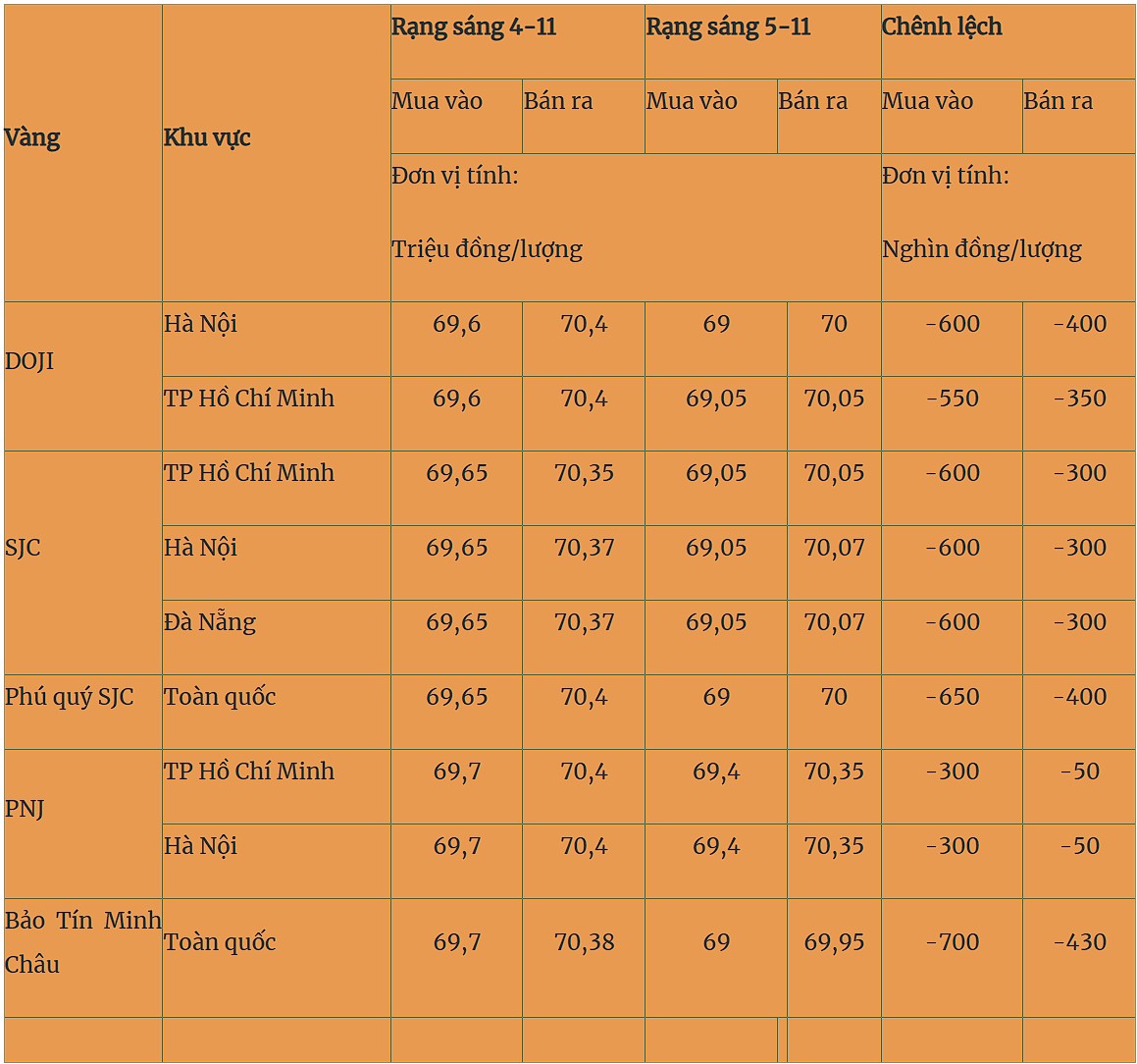 Giá vàng miếng trong nước cập nhật lúc 5 giờ 30 sáng 5-11 như sau: