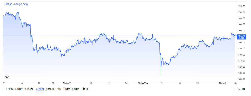 Đêm 6/9 (giờ Việt Nam), giá vàng thế giới giao ngay đứng quanh ngưỡng 1.823 USD/ounce. Vàng giao tháng 12 trên sàn Comex New York ở mức 1.825 USD/ounce.