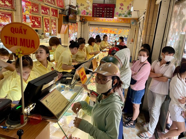 Không vào được Công ty SJC để mua vàng, chị Nguyễn Thị Hà (45 tuổi, ngụ quận Bình Tân) chạy vội đến tiệm vàng Mi Hồng (quận Bình Thạnh), chấp nhận đội nắng xếp hàng mua vàng. Tuy nhiên, khi sắp đến lượt mua vàng, chị Hà mới hay, vàng từ mức 118 triệu đồng/lượng đã vọt lên 120 triệu đồng/lượng; đến khoảng 13 giờ, giá vàng miếng SJC tại đây tiếp tục điều chỉnh tăng lên 121 triệu đồng/lượng. “Choáng với giá vàng, chỉ một chút chậm chân thôi mà mất thêm 2 - 3 triệu đồng cho mỗi lượng vàng mua vào” - chị Hà tiếc hùi hụi.