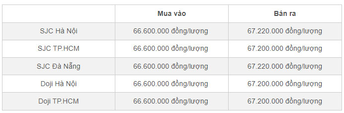 Còn giá vàng miếng của Tập đoàn Vàng bạc đá quý Doji tại Hà Nội tăng 50 nghìn đồng/lượng ở chiều mua vào nhưng lại giảm 50 nghìn đồng/lượng ở chiều bán ra; giá vàng miếng của Doji tại TP.HCM tăng 100 nghìn đồng/lượng ở chiều mua vào và giữ nguyên ở chiều bán ra so với chốt phiên hôm qua.